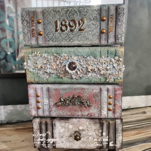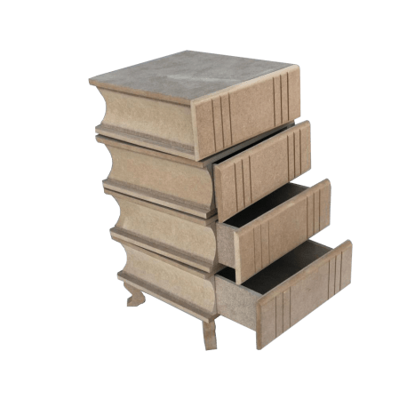 Pequeña cajonera compuesta por 4 libros a modo de cajones, apilados y que giran sobre un eje, realizada en madera de DM
