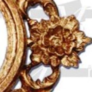 EN ESTE CASO ESTA PINTADO EN ORO Y ENVEJECIDO CON BETUN DE JUDEA Y ESENCIA DE TREMENTINA, DESPUES COMO TERMINACION SE LE PONE UN POQUITO EN LOS RELIEVES DE ORO EN CREMA.