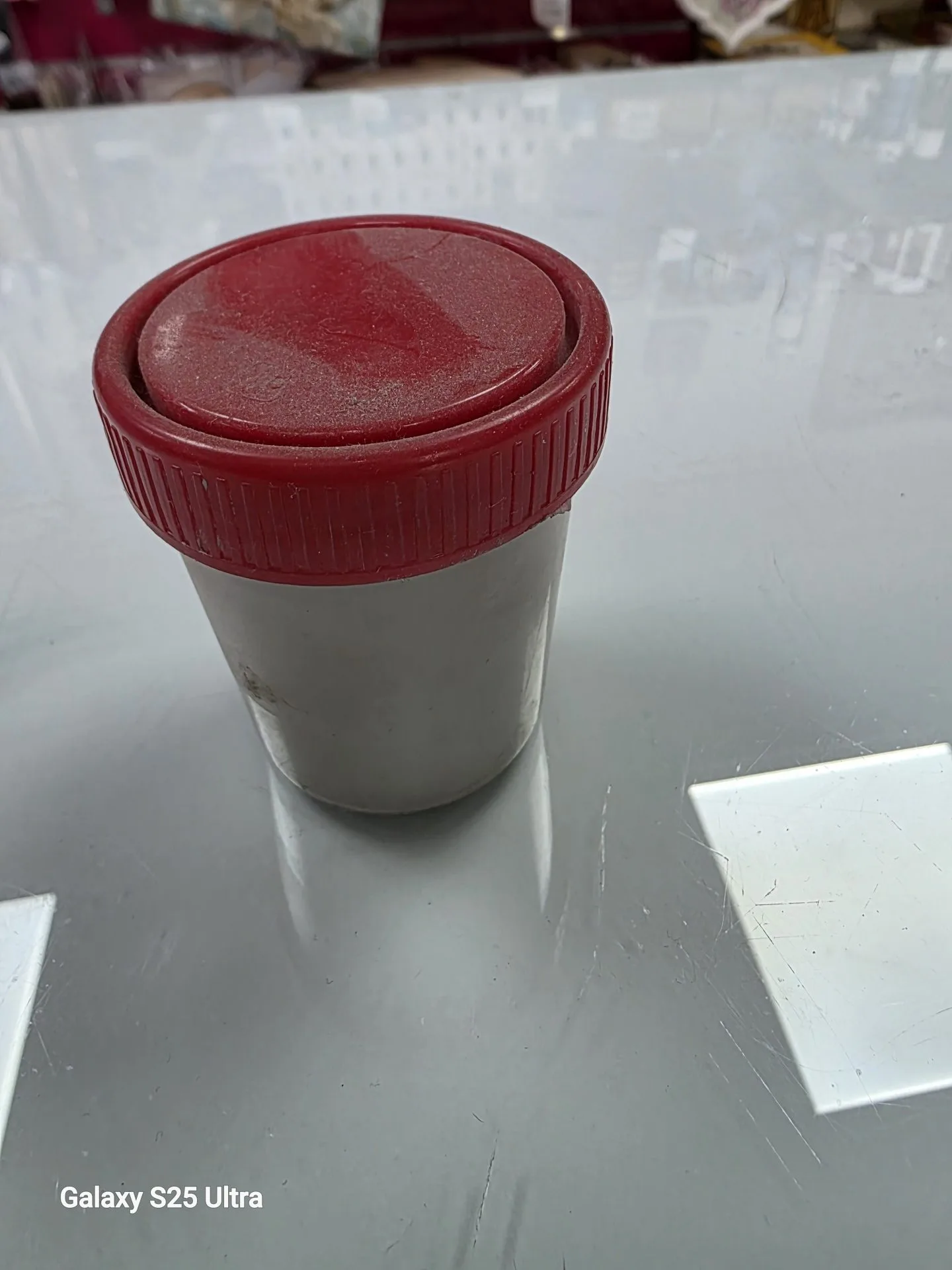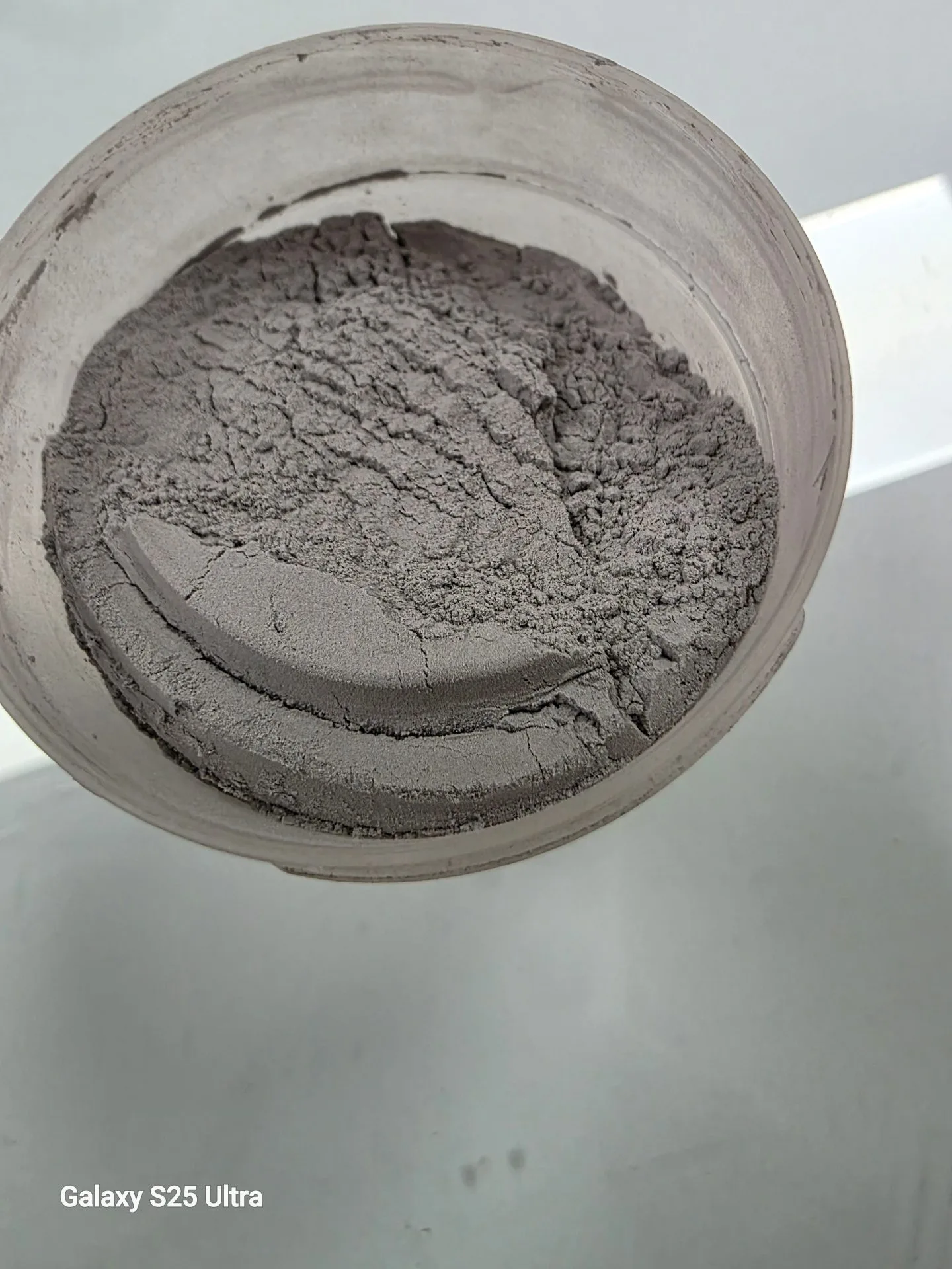 Tarrito pequeño con polvos grises.